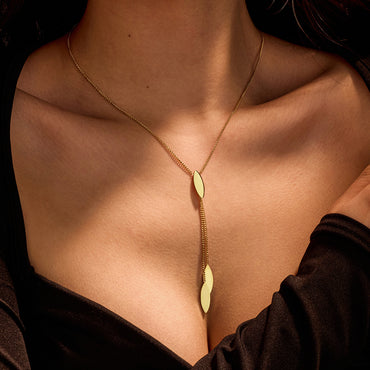Retro Simple Autumn Winter Sweater Chain Stainless Steel Water Drop Wafer Embellished Women Titanium Steel Clavicle Chain