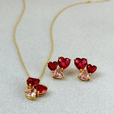 Original Elegant Heart Peach Semi Precious Stone Three Rows Twin Bracelet Necklace