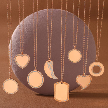 Stylish round Diamond Inlaid Stainless Steel Necklace Women Can Carve Writing Light Luxury Minority Gold Plated Embellished Ornament