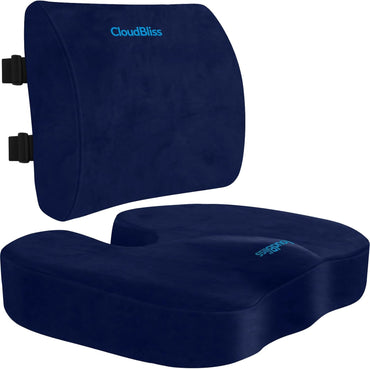 • CloudBliss Seat Cushion,Office Chair Cushion,Car Seat Cushions,Lumbar Support Pillow for Office Chair,Back Support Memory Foam Pillow Coccyx Cushions for Tailbone Pain,Sciatica Back Pain Relief Black