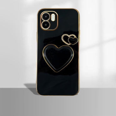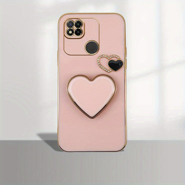 Coque de téléphone en silicone avec béquille rotative à 360° en forme de cœur, protection antichoc compatible avec Redmi A1/9/9A/9C/9T/10/10C/12/12C/13C - Avec fonction support, résistant aux chutes de 6,6 pieds