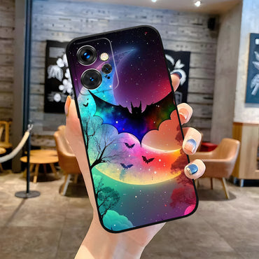 Un étui de téléphone avec des lignes, des étoiles et des lunes, compatible avec les modèles Redmi 10, 12C, 13, 14C, A1, A2+, A3, Note 8, 9, 10, 11S, 12, 13Pro+, conçu pour être dessin animé, transparent et antichoc avec une couverture complète en TPU. Il