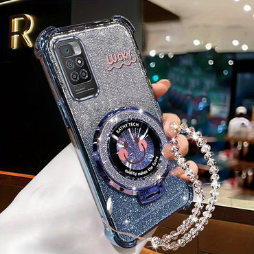 Coque de téléphone Redmi Note électroplaquée avec support lapin sable mouvant - Protection contre les chutes et protection de la caméra - pour Redmi Note 7/8/8 Pro/99 5G//9S/9 Pro/10/10 5G/10S/10 Pro/11/11S/11 Pro/Pro 5G/12 4G/12 Pro/12S/13 4G/13/13 Pro 4