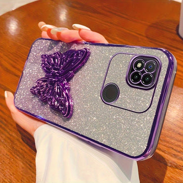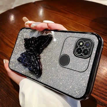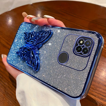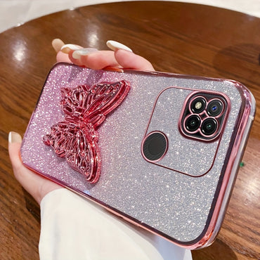 Coque de téléphone pliable à motif papillon 3D pour RedMi 10/10 Prime/10A/9C/9C-NFC/POCO C31/RedMi 10C/10Power/RedMi 13C-4G/POCO C65/21061119AG/DG/AL/M2006C3mg/MT/23100RN82L, 6RN0DA, 8RN04Y, 2311D14I, électroplaquée et résistante aux chocs
