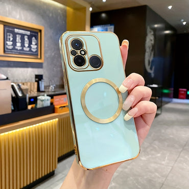 Une nouvelle housse de téléphone avec une monture de lentille tout-en-un de qualité supérieure, une anneau magnétique doré, un couvercle arrière électroplacé en TPU pour les modèles Redmi 12C, 13, 13C, 14C 4G et divers autres numéros de modèle.