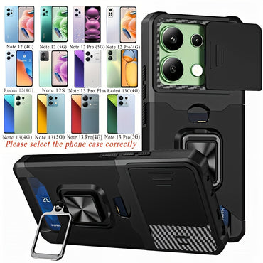 [1pc Coque de téléphone antichoc robuste] Coque de téléphone antichoc robuste avec un support en métal et un emplacement pour carte, compatible avec Redmi Note 13 Pro+, Note 12 Pro et Note 11 Pro.