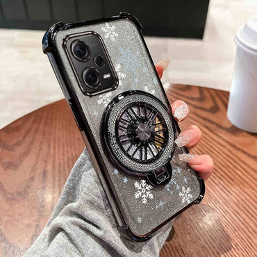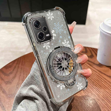 Coque de Support Rotatif pour Téléphone RedmiNote12 5G avec Moulin à Vent Pailleté Hiver Neige pour Xiaomi Redmi Note 12 5G, Anti-choc et Anti-choc