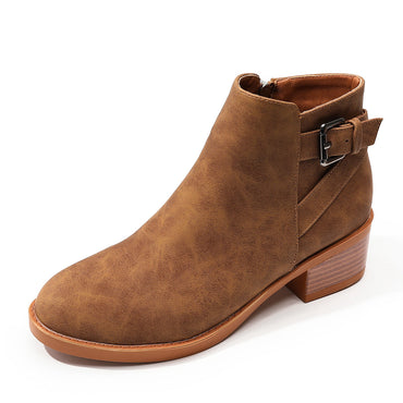 Autumn Winter Round Head Martin Boots Women Zipper Plus Size Chunky Mid Heel Booties Women