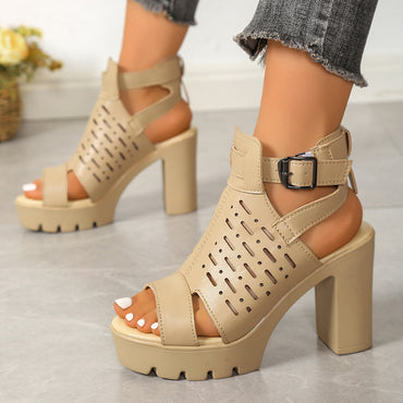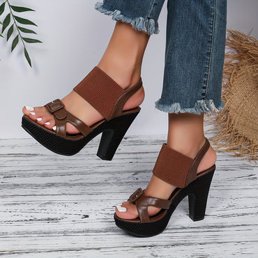 Elegant Women'S Open-Toe Sandals with Buckle Strap, Ultra-High Block Heel, Breathable Cut-Out Design, Faux Cover, Rubber Sole - Stylish Summer Footwear, Beachwear Sandals | Open Toe Sandals | Rubber Sole Sandals