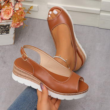 16 Sizes Available: Women's Thick-Soled Sandals, High Quality Platform Summer Fashion Slip-On Wedge Heels with Fish Mouth Design
