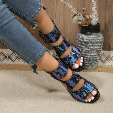 Women's Roman Sandals - Chunky Platform High Heel Sandals with Back Zipper Closure, Open Toe, Slip-Resistant Rubber Sole - Formal & Casual Shoes for Parties, Everyday, Office - All-Season Women's Footwear, Chunky Heel Sandals, Durable Synthetic Upper, Eve