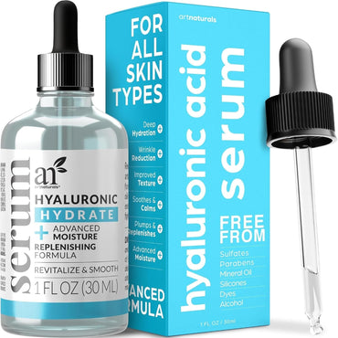 ArtNaturals Hyaluronic Acid Serum - Anti- Aging Facial Serum, Natural Moisturizer w/Vitamin C Serum & Vitamin E - for Skin Care - Reduce Wrinkles & Dark Spots (0.33 Fl Oz (Pack of 1))