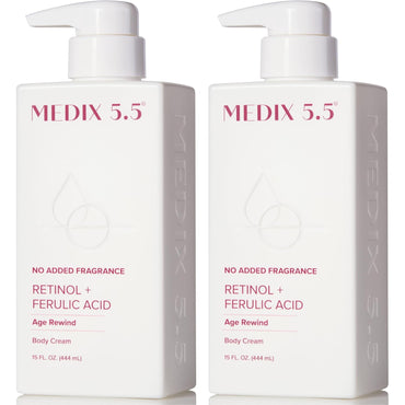 Medix 5.5 Fragrance Free Firming Retinol Body Lotion + Collagen Peptides Cream 2pc Skin Care Set, Crepey Skin Treatment, Anti Aging Body Cream & Face Moisturizer For Crepe Skin, Cellulite, Wrinkles