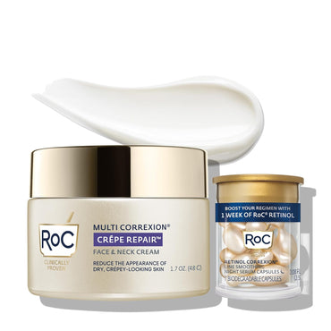 RoC Crepe Repair Anti Aging Daily Face Moisturizer & Neck Firming Cream (1.7 oz) + RoC Retinol Wrinkle Smoothing Capsules (7 CT), Skin Care Routine for Women and Men