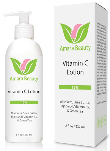 Amara Beauty Vitamin C Face & Body Lotion 15% - with Shea Butter & Jojoba Oil - 8 oz