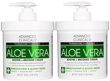 Advanced Clinicals Aloe Vera Lotion Sun Burn Recovery Cream | After Sun Body Lotion W/ Vitamin C + Hyaluronic Acid | Sun Damaged Skin Repair Moisturizing Cream | Skin Care Products, Large 16 Oz