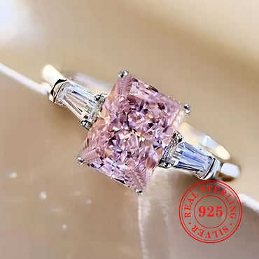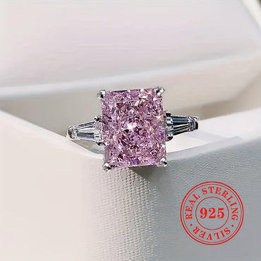 1pc High-Quality S925 Sterling Silver Birthstone Ring - Vibrant Artificial Pinkish Synthetic Gemstone, Sleek Band Design