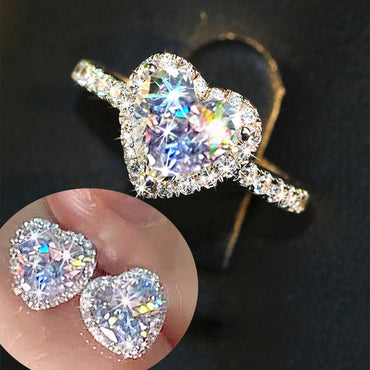 [3pcs Exquisite Heart Stud Earrings] Sparkling Bling 3pcs (ring+earrings)/ 4pcs (ring+earrings Necklace) Exquisite Heart Love Stud 925 Silver Plate Earrings Necklace Ring Set Jewelry Set Silvery Plated Paved zirconia Match Daily Outfits Party Decor A Gift