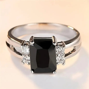 1pc Exquisite Halo Ring Inlaid Square Cut Shiny Silver Plated Sea Black Zirconia Elegant Anniversary Gift Proposal Engagement Women's Wedding Ring
