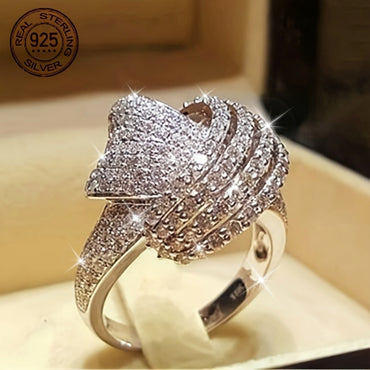 1pc Luxury 925 Sterling Silver Twisted Geometric Ring for Women, Synthetic Zirconia Inlay, White Golden Plated, Versatile for Daily Wear & Parties, Perfect Valentine'S Gift, All-Season Jewelry