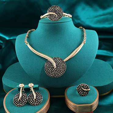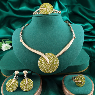 Elegant 4pcs Gold-Plated Jewelry Set with Colorful Artificial Crystals - Necklace, Bracelet, Earrings & Ring - Perfect for Weddings & Gifts