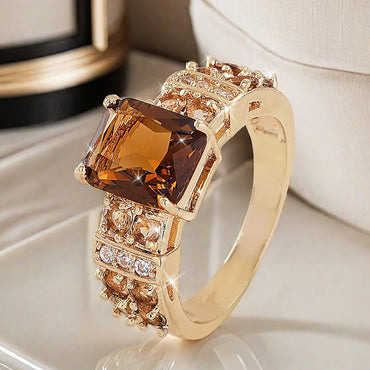 Square Cubic Zirconia Vintage Exquisite Ladies' Engagement Ring, Coffee Colored, Anniversary Romantic Valentine's Day Gift Wedding Ring