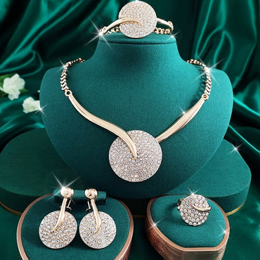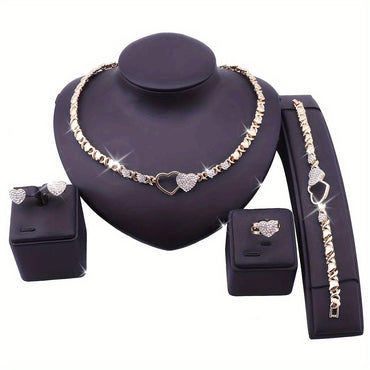 Fashionable Rhinestone Heart-shaped Necklace Earrings Bracelet Ring, Women's Party Banquet Jewelry Set Mother's Day Gift