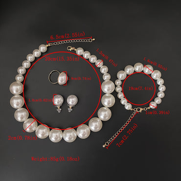 5-Piece Faux Pearl Elegant Jewelry Set for Women, Vintage French-Inspired Luxe Style Necklace, Bracelet, Earrings, and Ring, Sexy and Cute Fashion Accessories for Weddings