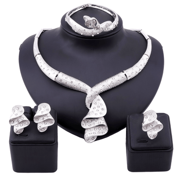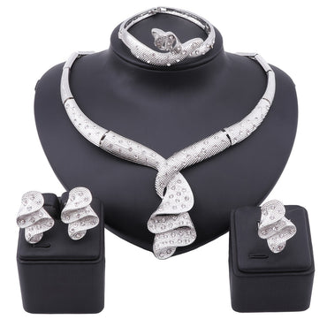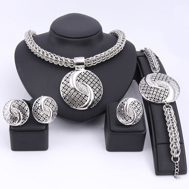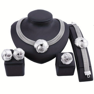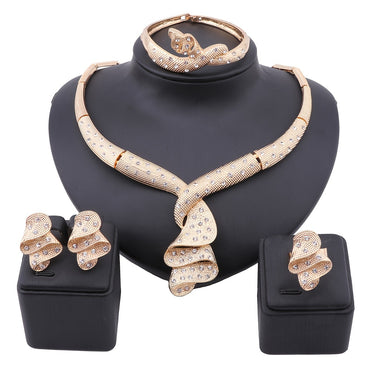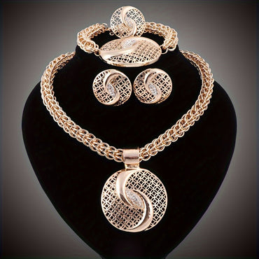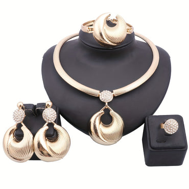 Golden Rhinestone Jewelry Set - Women's Round Necklace Earrings Bracelet Ring - Wedding Party Accessory Gifts