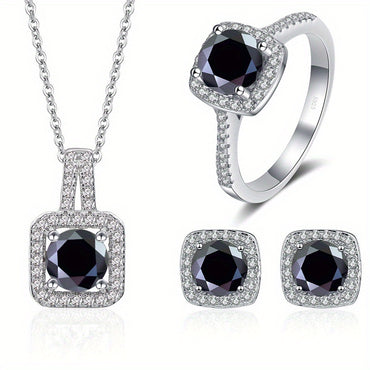 4pcs Radiant Cuboid Zirconia Jewelry Set - Sparkling Earrings, Necklace & Ring - Timeless Luxury for Her - Perfect Delicate Gift