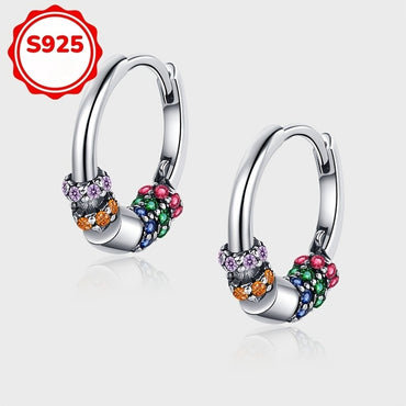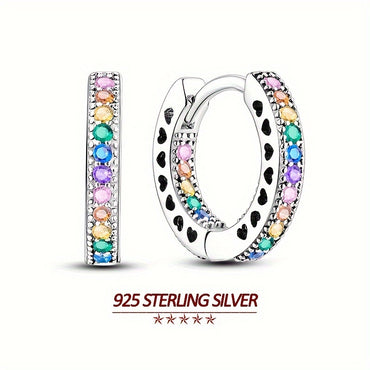 Original 925 Pure Silvery Low Allergy High Quality Women's Ring Earrings with Double Inlay of Colorful Zirconia Inside and Outside, Elegant Women's Ear Ornaments Jewelry Gift 3g