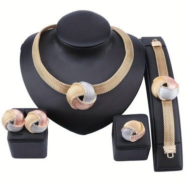 5pcs Luxury Vintage Jewelry Set, 18K Golden Plated Alloy, Includes Bracelet, Ring, Earrings, Necklace, Exquisite Filigree Floral Design, for Weddings and Banquets, All Seasons