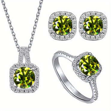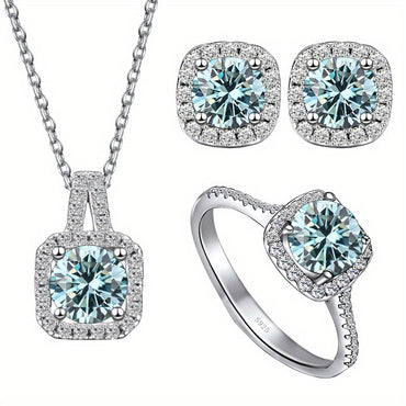 1ct Moissanite 925 Sterling Silver Jewelry Set: Earrings, Necklace, Plus Ring, High Quality Gift for Your Lover