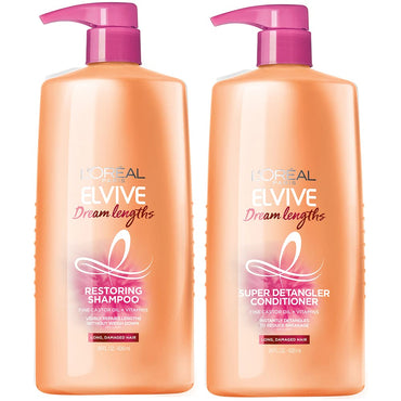 L'Oreal Paris Elvive Dream Lengths Restoring Shampoo With Fine Castor Oil and Vitamins B3 and B5 for Long, Damaged Hair, Visibly Repairs Damage Without Weighdown With System, 28 Fl Ounce (Pack of 2)