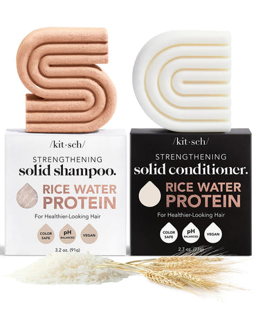 Kitsch Rice Bar Shampoo & Conditioner Set - Solid Rice Water Shampoo Bar & Conditioner Set Soap for Strengthening Hair - Paraben-Free, Made in USA, Valentines Gift - 2pcs
