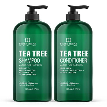 Botanic Hearth Tea Tree Shampoo and Conditioner Set - with 100% Pure Tea Tree Oil, for Itchy and Dry Scalp, Sulfate/Paraben Free - for Men and Women - 16 fl oz each