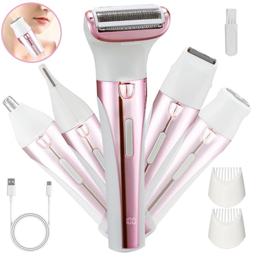 Turkio 5-in-1 Rechargeable Electric Razor for Women with Nose Hair Trimmer, Face, Bikini and Body Shaver