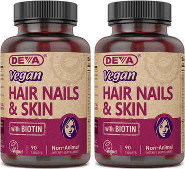 DEVA Vegan Hair, Nails & Skin Vitamins & Minerals with Biotin, Supplement, 90 Tablets
