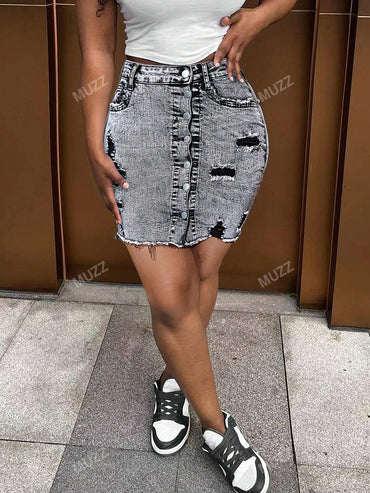 Details: Raw Hem, Ripped, Button Front Style: Casual Type: Bodycon Features: Great quality Color: Medium Wash Pattern Type:...