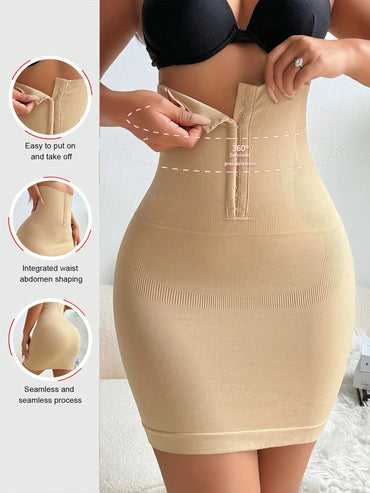 Women's Solid Color High Waist Front Button Shapewear Slip