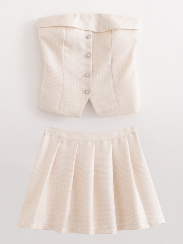 Women Summer Elegant Chanel Style Strapless Two piece Set