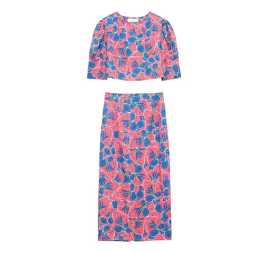 Women Clothing Printed Skirt Set Round Neck Short Sleeve Top Skirt Two Piece Suit Suits
