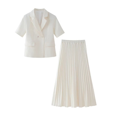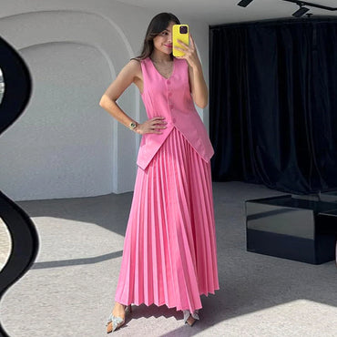 Women Vest Pleated Skirt Summer Solid Color Elegant Women Two Piece Set