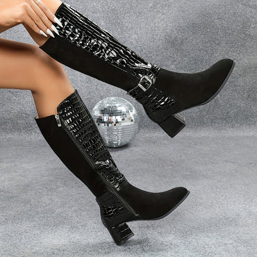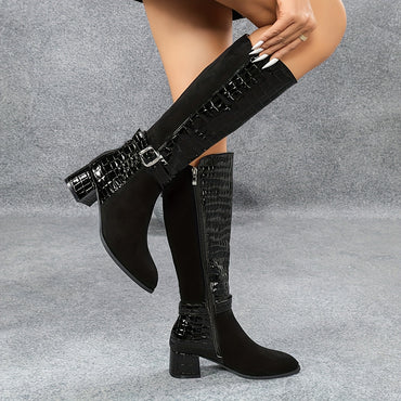 1pr Elegant Solid Color Knee-High Boots for Women - Pointed Toe, Block Heel, Side Zipper, All-Season, Comfortable, Durable Microfiber Upper, Fabric Lining, TPU Sole, Fabric Insole - Stylish and Durable