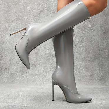 Elegant Women'S Pointed Toe Stiletto Heel Knee-High Boots - Ultra-High Thigh Boots with Zipper Closure, Synthetic Cover & Rubber Sole for Formal & Casual Wear, Versatile Fashion Boots | Sleek Boot Design | Synthetic Cover Boots