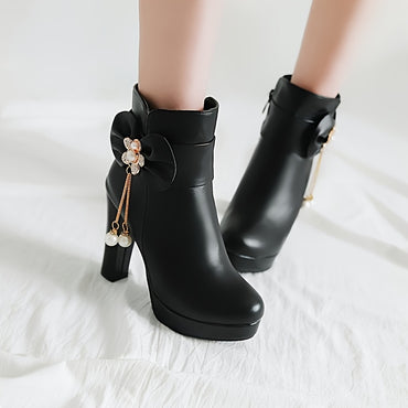 Pattern: Solid colorOccasion: ComfortHeel Type: Block heelClosure: ZipperToe Style: Round toeType: DressAll-season: WinterPrinting Type: No PrintingHeel Hight: Ultrahigh HeelStyle: FashionUpper Material: man made materialsInner Material: FabricInsole Material: FabricSole Material: RubberOperation Instruction: Hand wash...