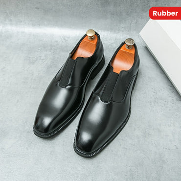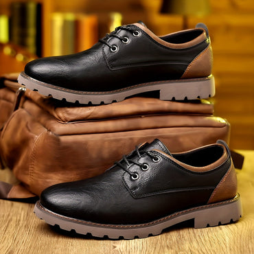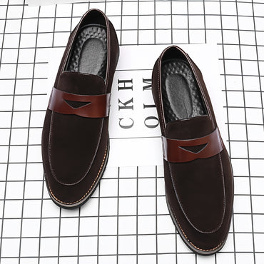 • Men's Elegant Brown PU Slip-On Dress Shoes - Breathable, Non-Slip Rubber Sole Fashion Footwear for Every Season