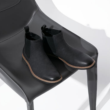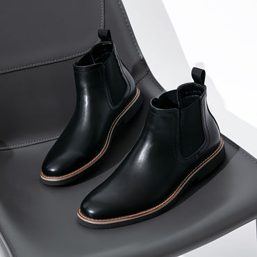 • Men's Classic Boots - Slip-On Ankle Dress Boots for Business and Casual Wear, Black with Rubber Sole