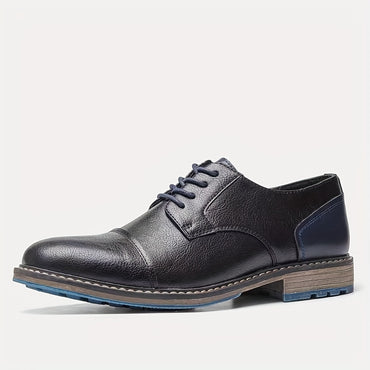• Plus Size Men's Solid Color Plain Toe Derby Shoes, Comfy Non Slip Lace Up Durable Rubber Sole Dress Shoes, Men's Footwear