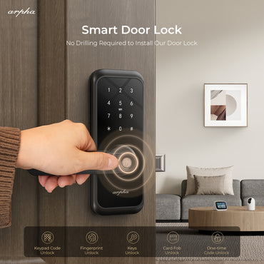 High Quality Arpha Smart Door Lock with Touch Screen Keypad & Fingerprint Access, Wireless App Control, Sleek Black Design – Perfect Housewarming Gift for Front Door or Apartment, Front Door Lock | Sleek Touch Keypad | Durable Door Lock, Door Locks for Ho